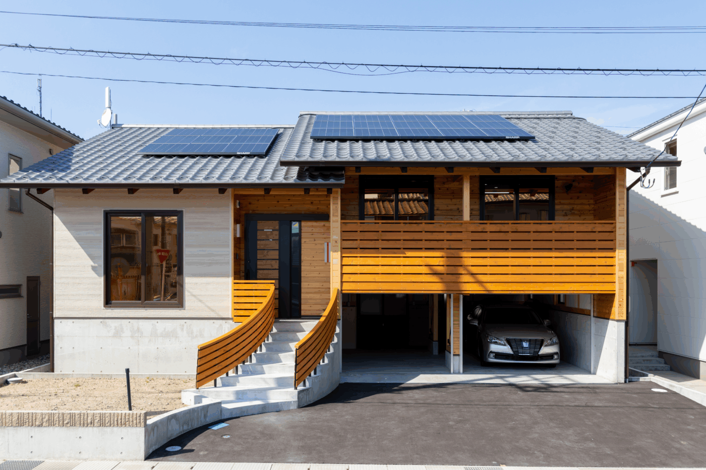 ガレージがあると、車から玄関までの移動が濡れず、荷物や子どもを抱えての移動も安心です。